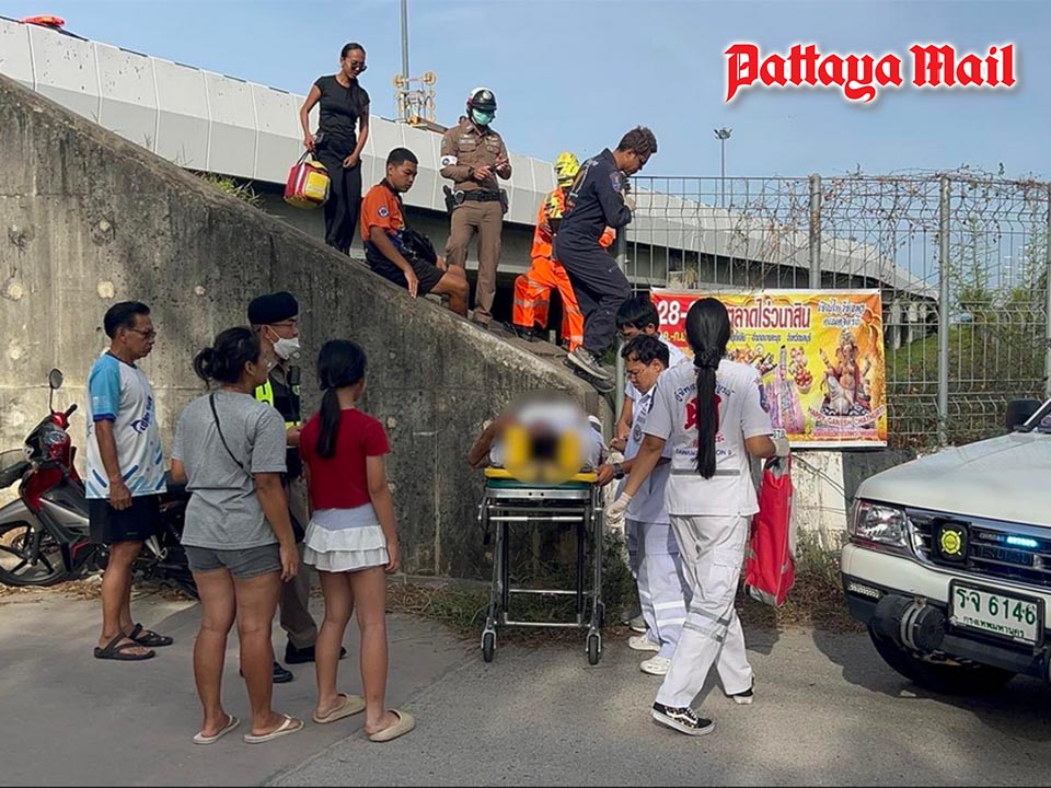 Motorcyclist miraculously survives fall from Pattaya overpass