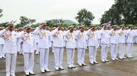 Luechai promised to perform his duties with honesty and better the foundation of the navy, The 1,000 sailors and officers assembled stood in line stretching to the door to say goodbye to their old boss and hello to the new one.