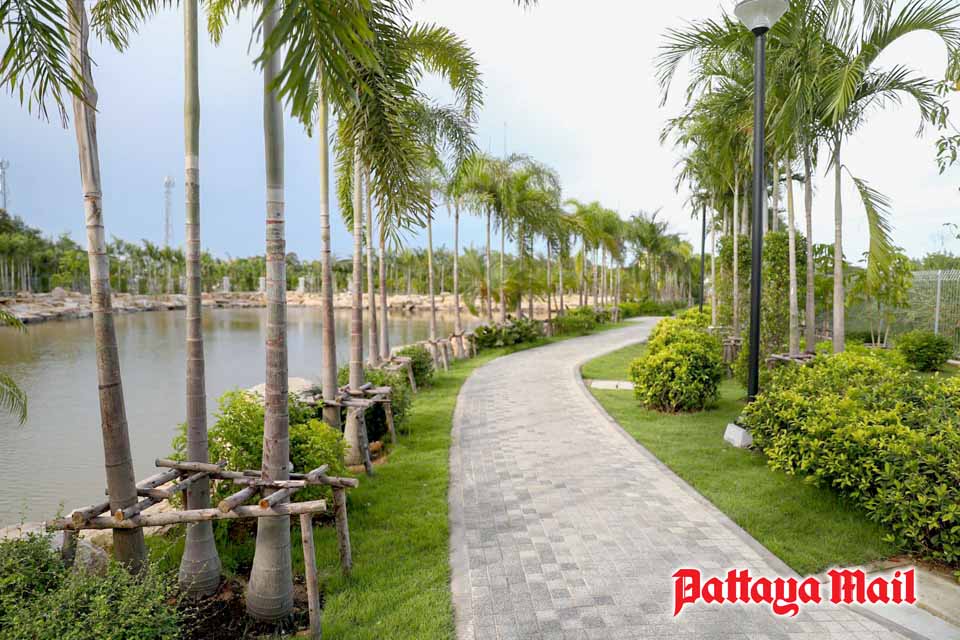 Pattaya Mayor Sonthaya Kunplome said June 16 that the five-rai park will offer Jomtien residents space to play sports and relax. Construction is nearly complete and now is being inspected and tweaked by the city’s Environment Department.