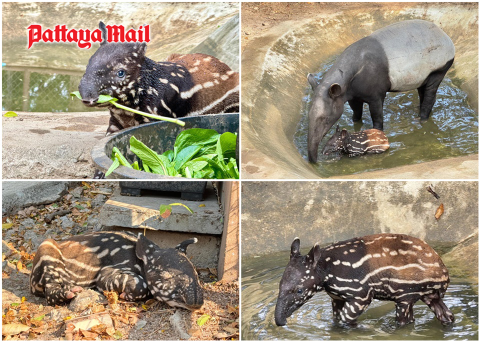 PATTAYA, Thailand – Khao Kheow Open Zoo, near Pattaya City, joyously announced the arrival of a precious new member to their family on March 10. Amidst the semester break, the zoo proudly welcomed a newborn Tapir, a treasured species native to Thailand. Born to the proud parents “Bai Song” (male, 5 years old) and “Jamkhlon” (female, 14 years old), the latest addition, a male, came into the world on February 9.