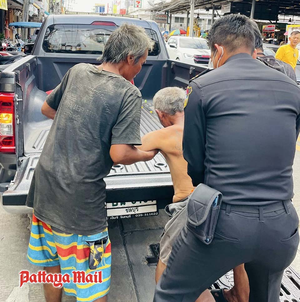 PATTAYA, Thailand – A touching moment of humanity unfolded in Naklua when local municipal officers rushed to help a homeless man found seriously injured outside a convenience store. The man, who appeared disoriented and was bleeding heavily from wounds to his head and arms, had no one by his side until the officers arrived. Without hesitation, they provided assistance and arranged for him to be transported to Pattaya Patthamakhun Hospital for immediate medical treatment.