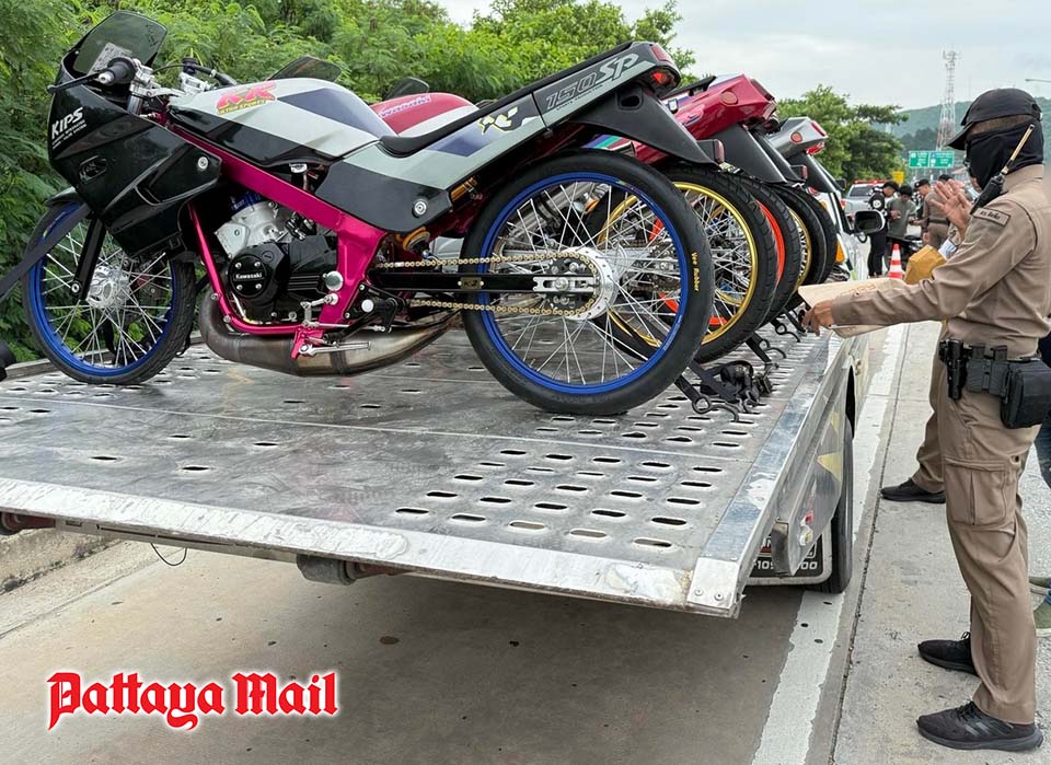 Coinciding with the accident, police in Sattahip—under orders from Pol. Col. Komsan Kamtunkaew—launched a targeted enforcement operation along Route 3126 near Nang Ram Beach. The sweep followed multiple complaints from residents about loud exhausts and street racing. Officers from multiple divisions, including traffic, highway patrol, and special operations, were deployed to check for illegal exhaust modifications, unregistered vehicles, lack of helmets, and drivers without licenses or documentation.