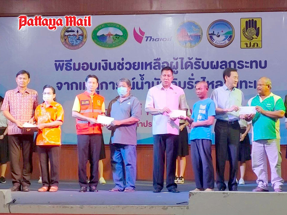 PATTAYA, Thailand – On November 16, Chonburi Province Governor Thawatchai Srithong presided over a ceremony at the Provincial Hall to distribute financial assistance to individuals affected by the crude oil spill into the sea on September 3 when more than 60,000 litres of oil leaked into the sea at the Single Buoy Mooring (SBM-2) of Thai Oil Refinery in Sriracha, approximately 16 kilometers southwest of the Thai Oil refinery’s shoreline.