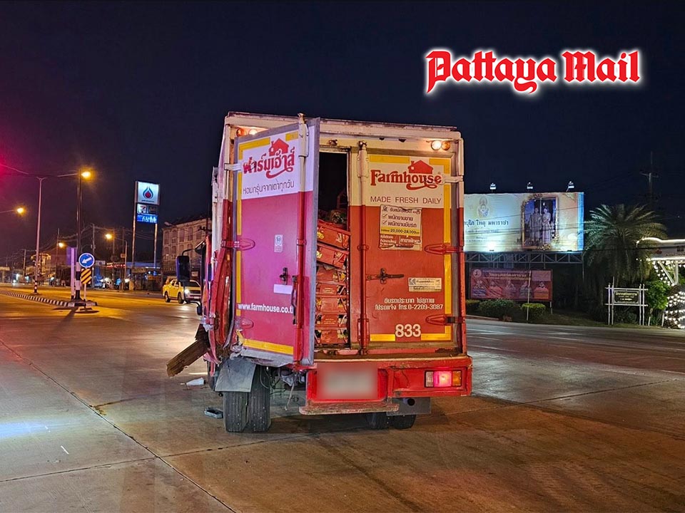 Nearby, a well-known brand’s bread delivery truck was found damaged after being struck from behind. The truck driver told authorities he had been stopped at a red light heading toward Sattahip when the sedan slammed into the rear of his vehicle at high speed. He immediately contacted emergency services for assistance.