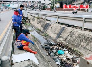Pattaya’s drainage under strain as streets fill with debris during rainy...