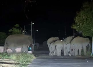 Over 30 wild elephants from Khao Yai National Park storm Sarika...