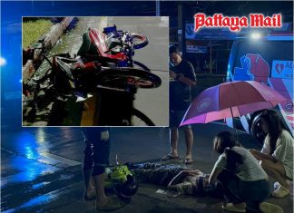 Motorcyclist critically hurt after hitting garbage truck on rain-soaked Pattaya road