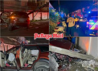 Drunk senior driver smashes utility pole in Pattaya, causes blackout