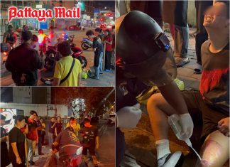 Pedestrians injured as Chinese motorcyclist crashes at speed in Pattaya