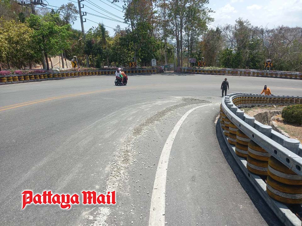 PATTAYA, Thailand – Authorities in Pattaya responded to a road safety incident after concrete debris was found scattered along a curve on the uphill route of So To Ro 5 or Naval Radio Station in the Jomtien area, raising concerns over hazards for passing vehicles.