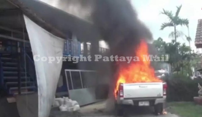 After fighting with his wife, a Chonburi husband figured he’d show her by lighting his own pickup truck on fire.