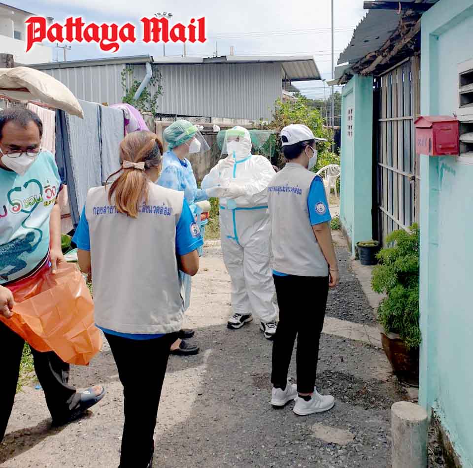 Banglamung Subdistrict officials brought food and face masks to quarantined residents on a Covid-19-hit neighborhood who this week complained to the press they had been abandoned.