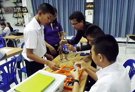 Seventy adults and children attended the Jan. 19-20 workshop at Pattaya School No. 7. Organized with the help of Gamaco Co., which previously sponsored robot competitions at the “Edutainment Zone” in Bangkok’s Siam Paragon shopping mall, the training gave participants a chance to learn, design and create robots according to project-based learning guidelines.