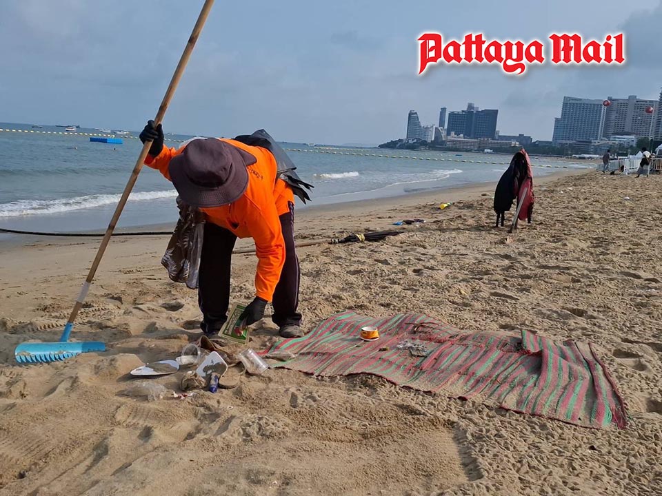 PATTAYA, Thailand – Large amounts of rubbish left behind on Pattaya Beach have sparked frustration among residents and officials, with many questioning why some visitors can carry food and drinks onto the beach but not take a few extra steps to throw their waste away properly.