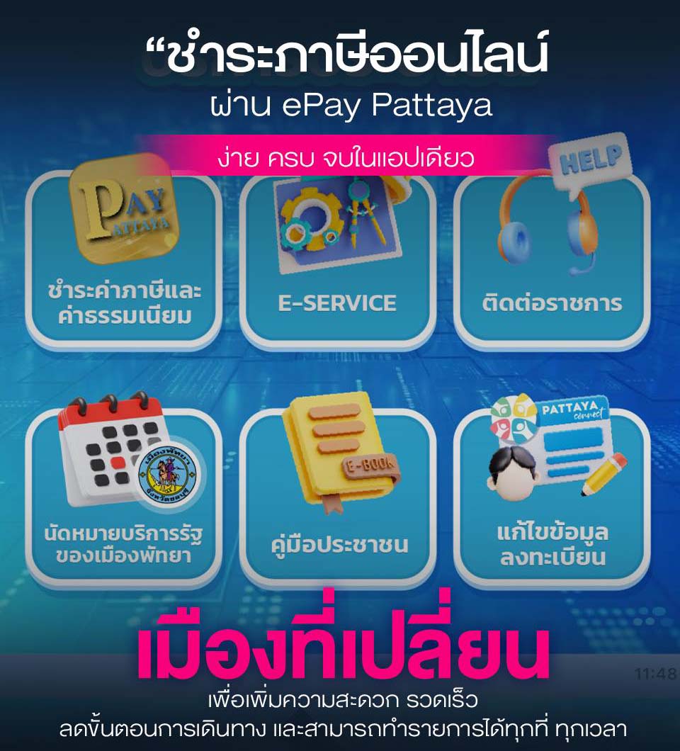 Users can complete transactions anytime and anywhere through multiple channels, including the ePay Pattaya mobile application, Line Official account “Pattaya Connect,” the city website, mobile banking apps, and selected counter service points such as 7-Eleven stores.