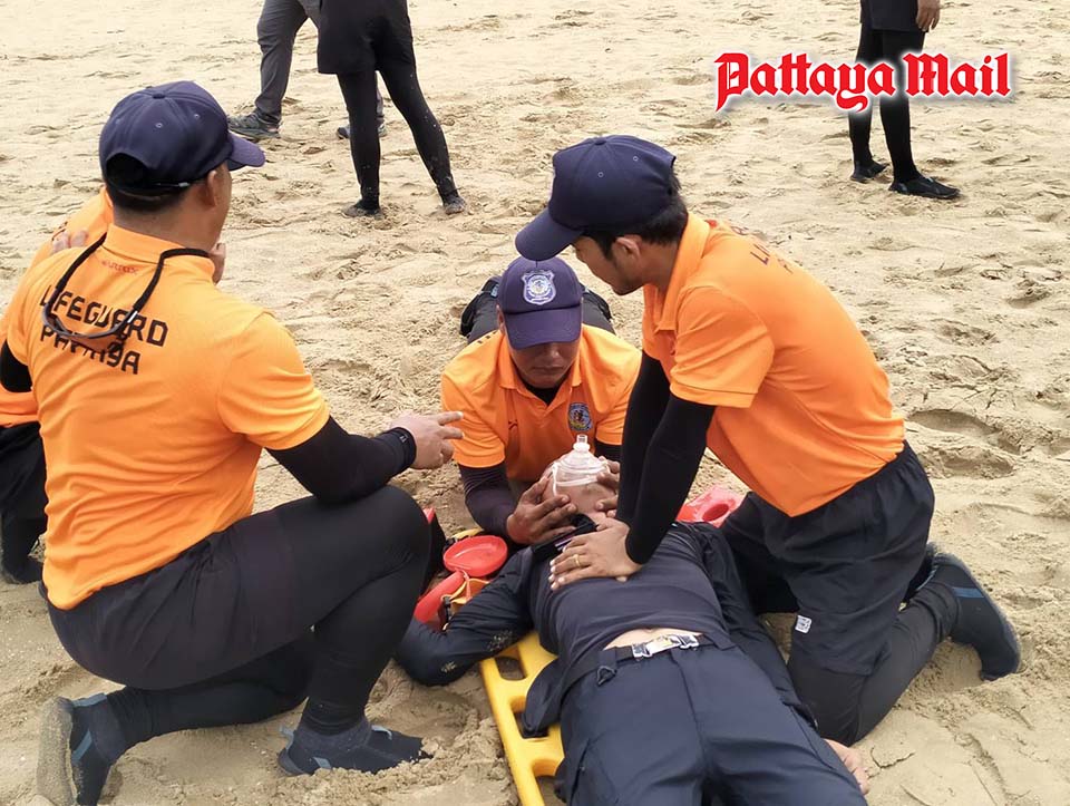 Pattaya conducts lifeguard drill ahead of long holiday weekend, urges drunk swimming report