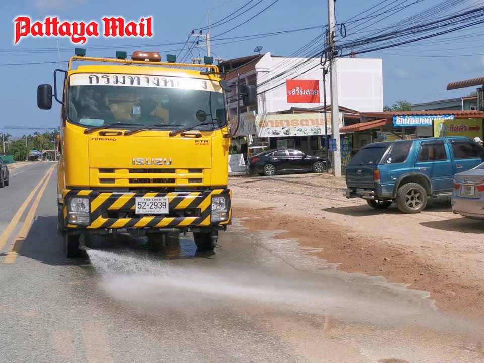 The Department of Rural Roads used high-pressure water jets as road crews followed along to sweep away the debris.