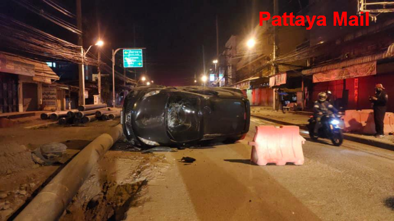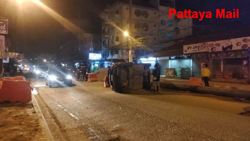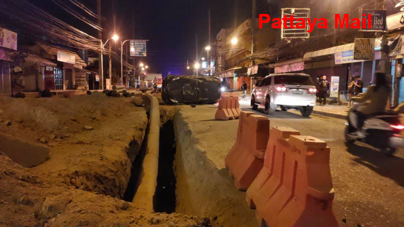 Pattaya driver with dark windscreen plunges into roadwork