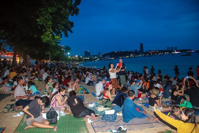 Tourists were seen reserved their front seats on Pattaya beach to watch and hear the fireworks up close.