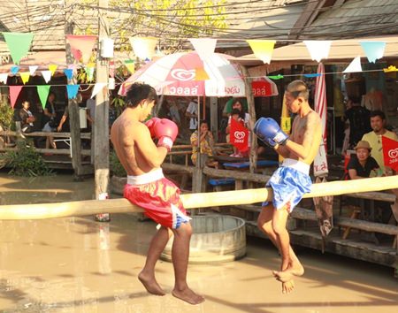 Pugilists get set to begin a “Muay Talay” (sea boxing) match at Pattaya Floating Market.