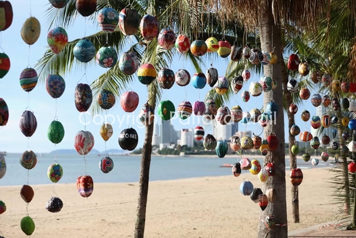 Pattaya encouraged residents to paint coconuts that are being hung around the city to brighten the depressed pandemic atmosphere.
