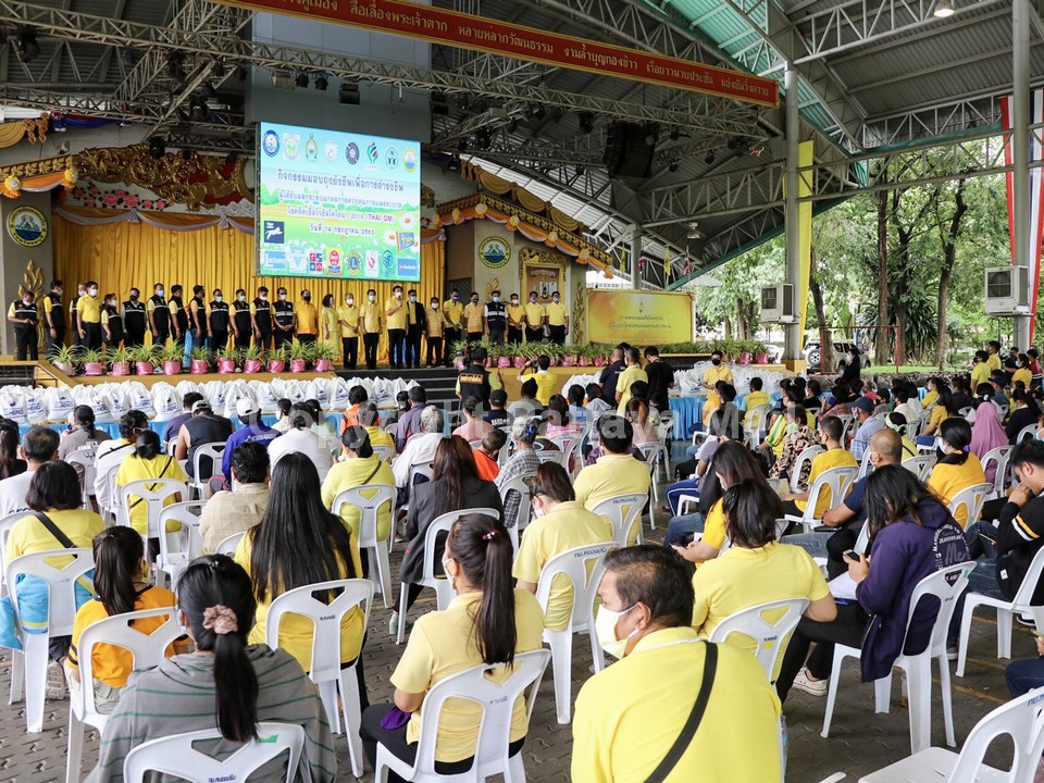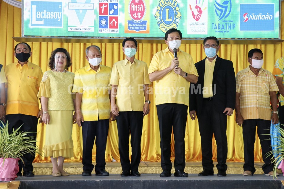 Pattaya-area residents received cash stipends, face masks and hand sanitizer at an anti-coronavirus rally in Nongprue.