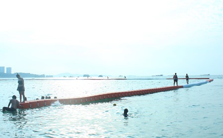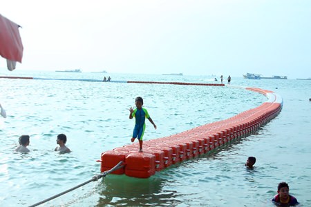The wide, red-and-white barriers replaced round orange buoys that marked several locations along Pattaya and Jomtien beaches and have received generally positive reviews from both beach-goers and boat operators. But even before their installation was complete, questions began mounting over the decision to use flat, wide, heavy-duty plastic. Several people were injured while walking on the water fences never intended to be a dock.