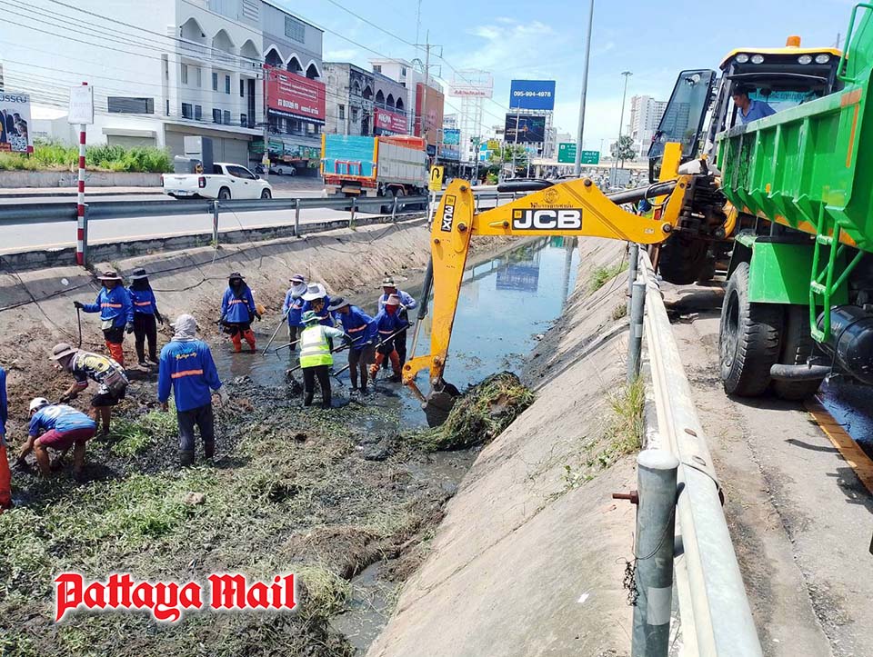PATTAYA, Thailand – City authorities are stepping up flood prevention efforts as the rainy season intensifies, with the Sanitation Engineering Division of the Pattaya City Clerk’s Office leading clean-up operations along major drainage routes.
