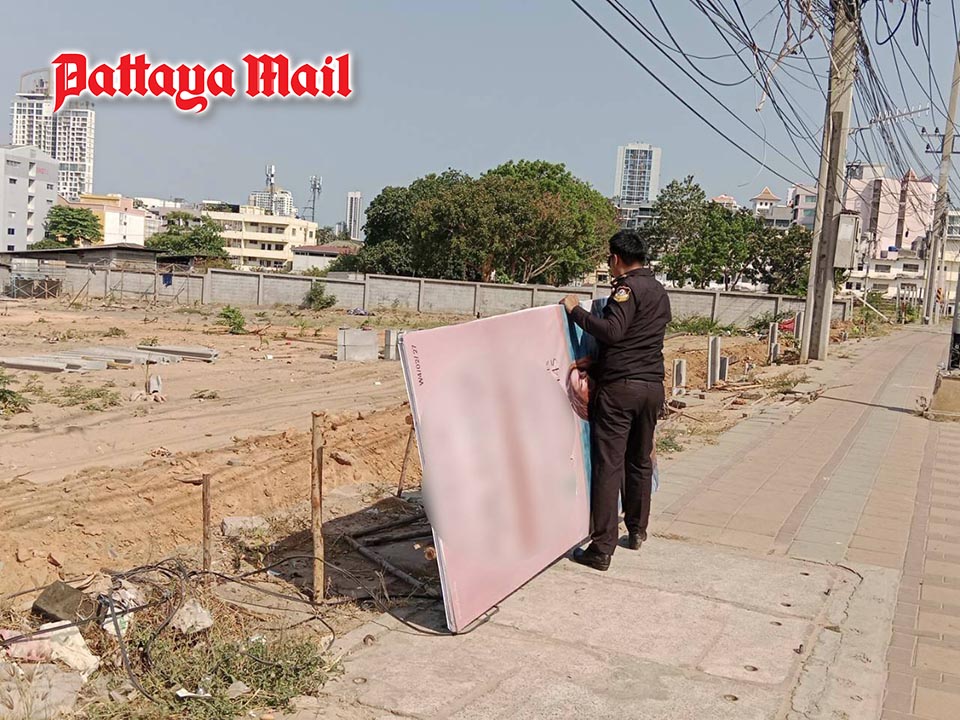 PATTAYA, Thailand – Municipal enforcement officers in Jomtien have launched an operation to remove unauthorized advertising signs placed along roadsides and public areas, as part of efforts to maintain order and improve the city’s image as a tourist destination.