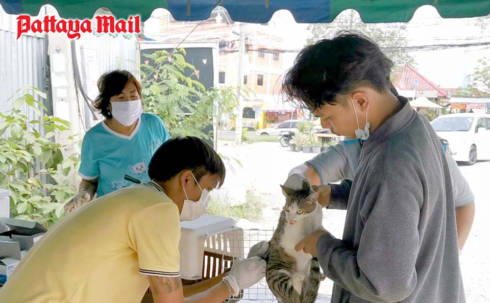 The Nongprue health department provided free rabies vaccinations for cats and dogs June 14 at the Khao Noi Plaza market. Hundreds of pet owners brought out loved ones to get the lifesaving vaccines.