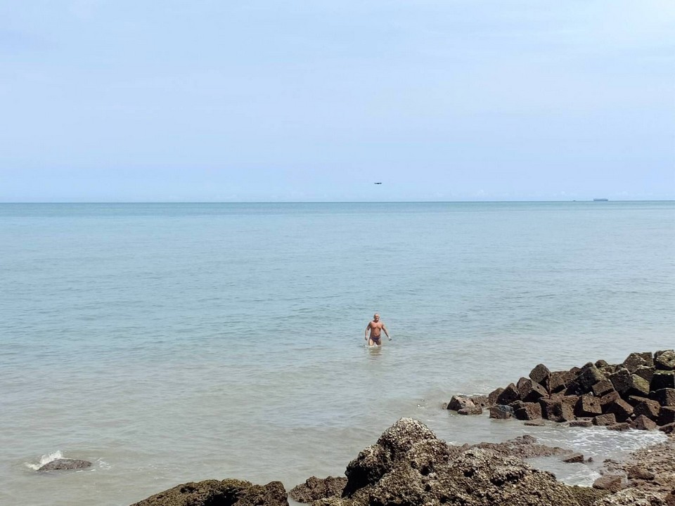 A police drone spotted the foreigners swimming on a beach behind a hotel on Pratamnak Hill.