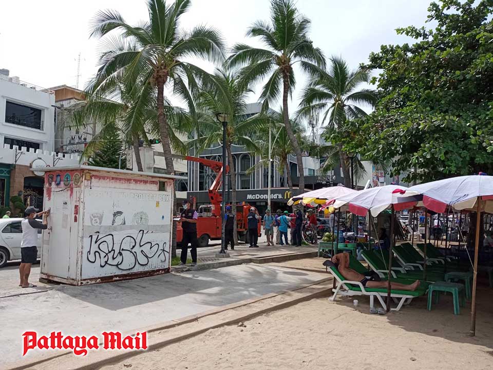 Pattaya officials cleaned up the neglected police tourist-service center opposite the Royal Garden Plaza on beach road.