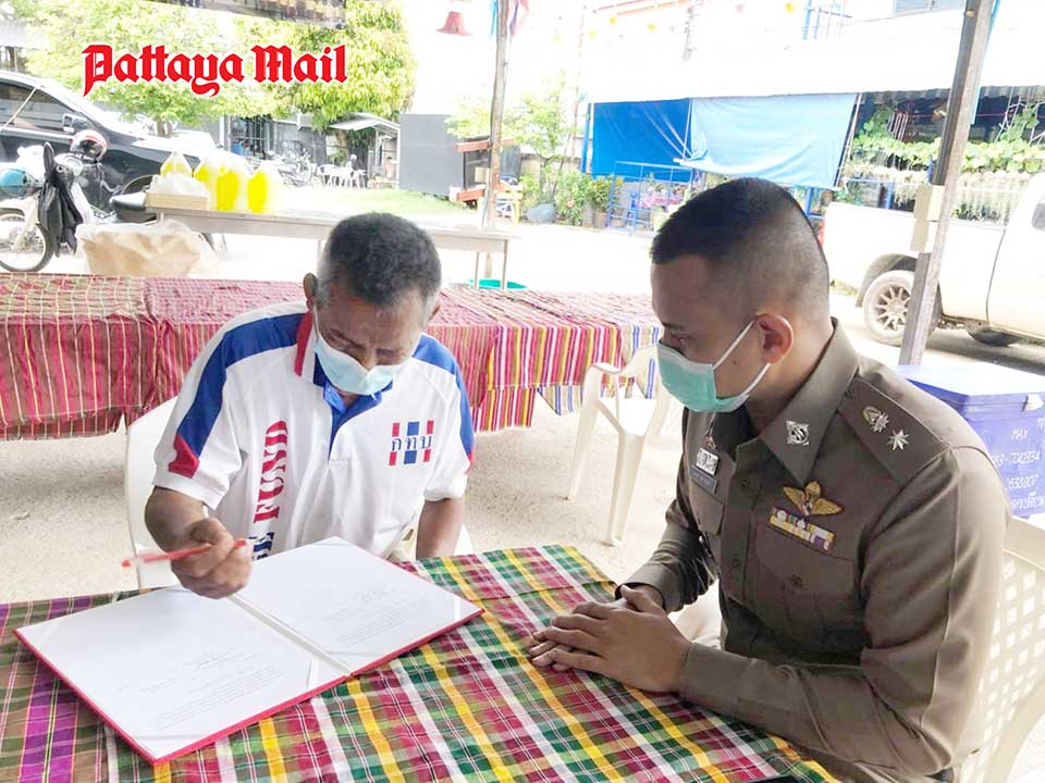 Pol. Lt. Col. Arut Sapanon briefed residents of South Pattaya’s Soi Korpai Community on the “leave your car with police” project, even though, in fact, no cars are left with police.