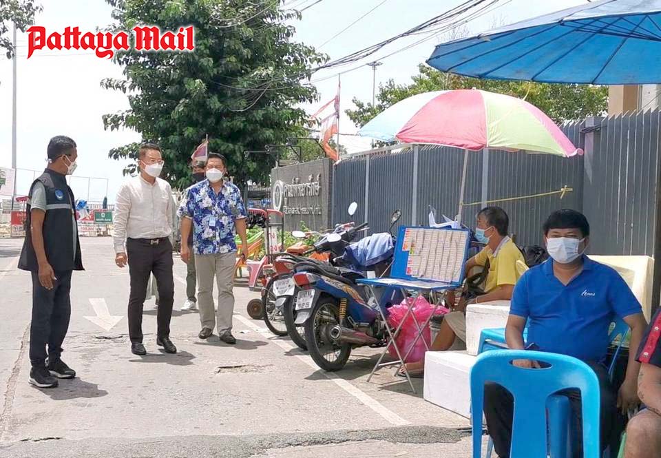 Deputy Mayor Wuthisak Rermkijakarn, Santi Klongnoi and his team inspects the Pattaya Raksa Center at Lan Po where many vendors’ carts and motorcycles were parked along the wall, resulting in narrower parking space.
