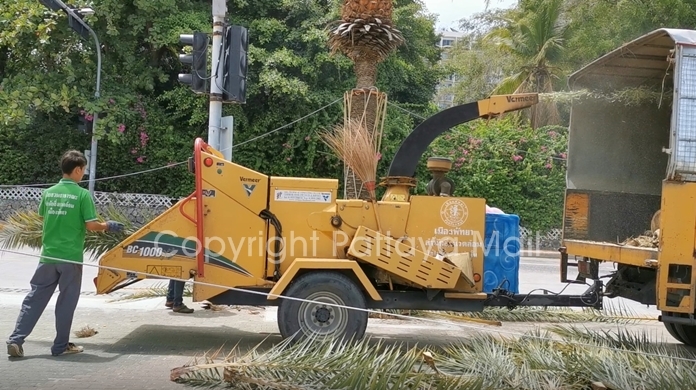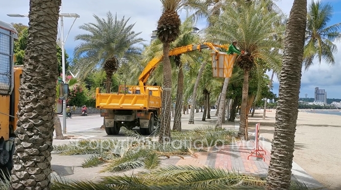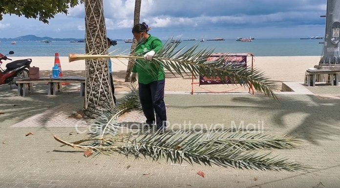 Environment Department workers were out June 1 pruning trees on Pattaya and Jomtien Beaches so that people returning to beach have nicer scenery and don’t have coconuts dropping on their heads.