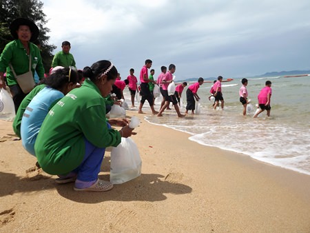 City workers joined the Naklua Bay Conservation Group and Central Center at Jomtien Beach, where they picked up garbage and cleaned the shoreline.