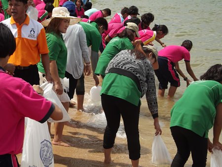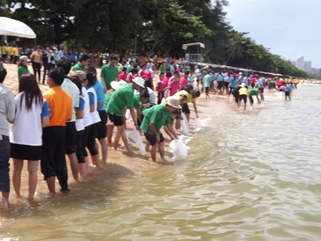 Pattaya officials released 2,000 silver perch into the sea as the city marked World Environment Day.