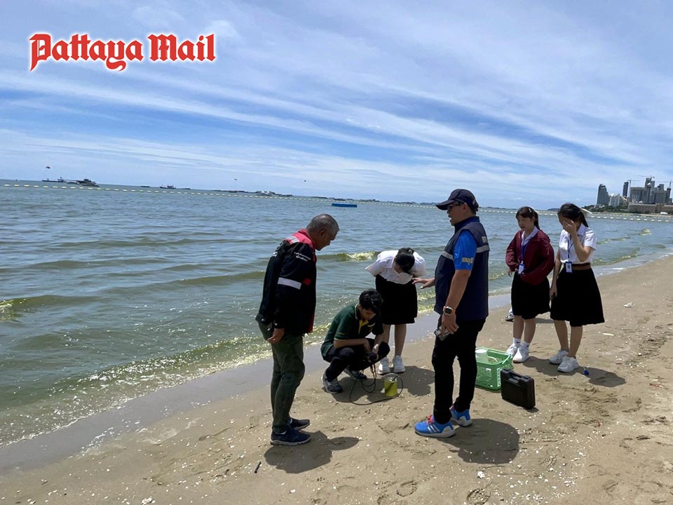 In response, the Water Quality Analysis and Pollution Control Division, along with the Complaints Reception Unit from Pattaya City Hall, promptly took action. Teams were dispatched to the beach area to collect water samples and conduct thorough analyses to monitor the bloom’s progress and its effects on water quality.