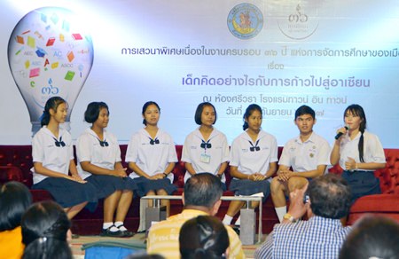 Top students from Pattaya schools were selected to speak at the special “What Thai Children Think About the AEC” forum at the Town and Town Hotel.