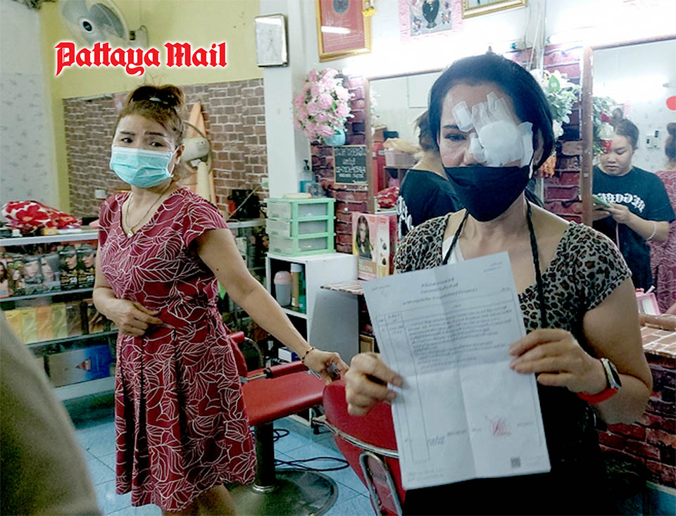 Arporn Permpoon, 59, suffered a bloody gash in the April 9 altercation at the Beauty Salon in South Pattaya. She identified her attacker for police as Boom, 48, who she has known for a couple months.