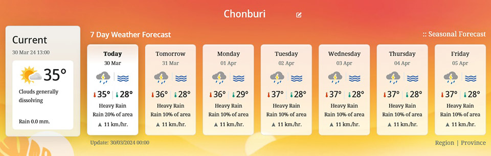 7 Day Weather Forecast in Chonburi.