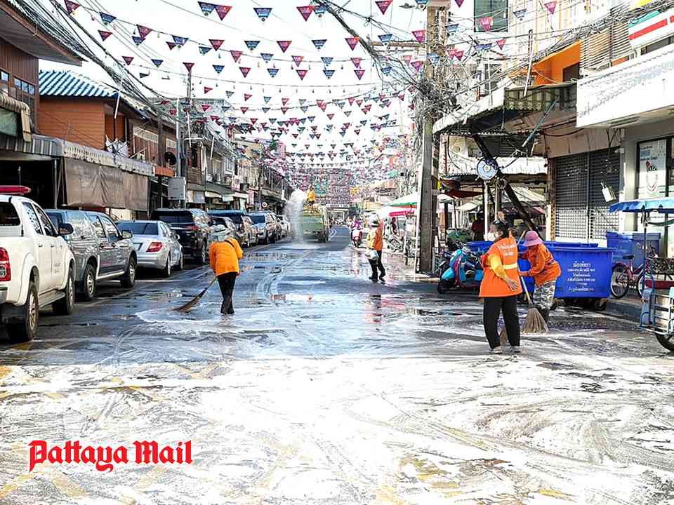 The initiative, which took place along Srichan Road from the Long Bridge to the New Market in Naklua, involved sweeping, washing, and spraying water on the roads to remove dust and fine particles that can harm public health.