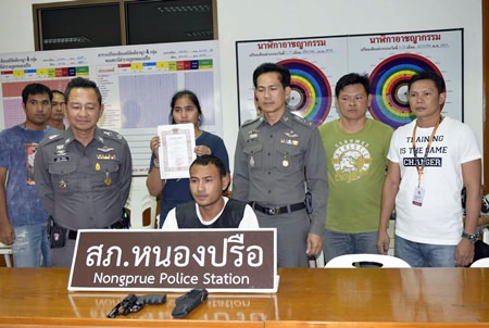 Meti Munghadee, 28, turned himself in to Pattaya police March 2, along with the 38-caliber handgun he said he used to kill Anon Jumsuntorn, 25, at the Nat Pope pork barbecue restaurant on Sutthawat Road in Nongprue.