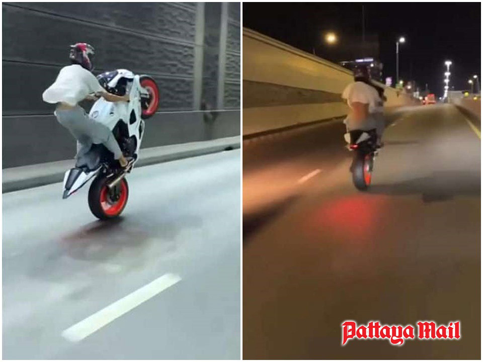 The video posted on Facebook showing a motorcyclist on a big bike performing a dangerous wheelie in the Pattaya underpass sparked widespread criticism and calls for legal action.