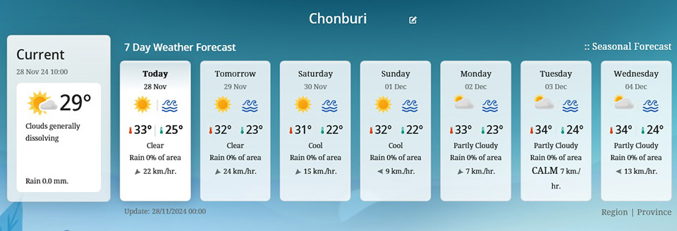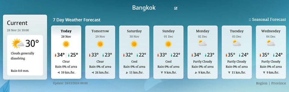 BANGKOK, Thailand – The Thai Meteorological Department (TMD) has issued Alert No. 6, warning of heavy rain in southern provinces, strong winds in the lower Gulf of Thailand, and cold weather in upper Thailand from November 28 to 30.