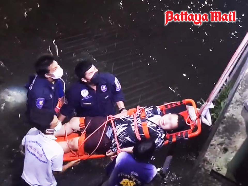 A Pattaya woman was injured after leaping into a drainage canal.