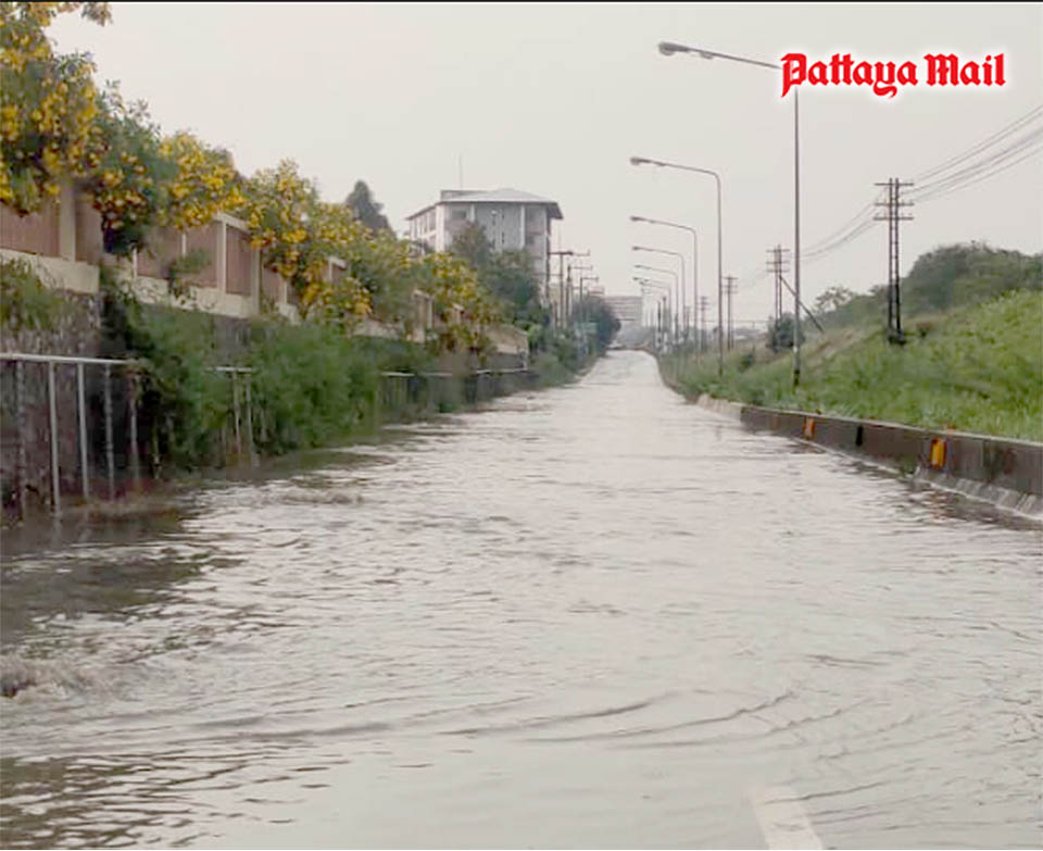 Soi Khao Talo, the railway road and Soi Khao Noi became raging rivers while the southern end of Sukhumvit Road collected 50 centimeters of water.
