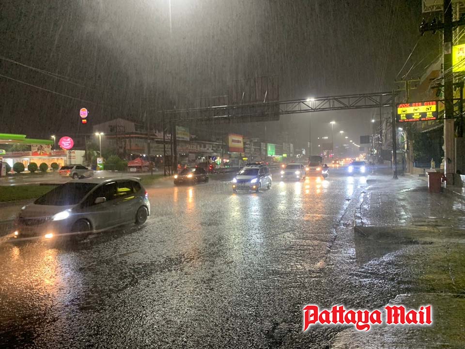 Despite the heavy rainfall on the evening of Wednesday, August 6, traffic on Sukhumvit Road in South Pattaya remained normal after about an hour of rain, with no major disruptions reported.