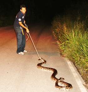 Why did the python cross the road? Sattahip residents may never know, as authorities had to scoop a 4-meter-long snake off Sukhumvit Road because it was blocking the passage of some unnamed high-ranking officials.