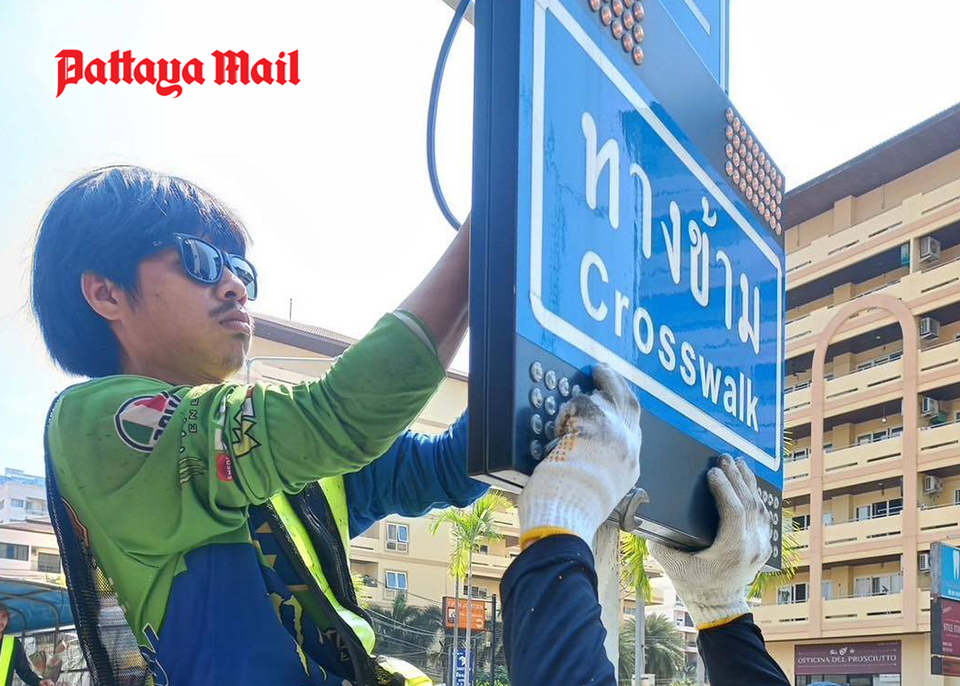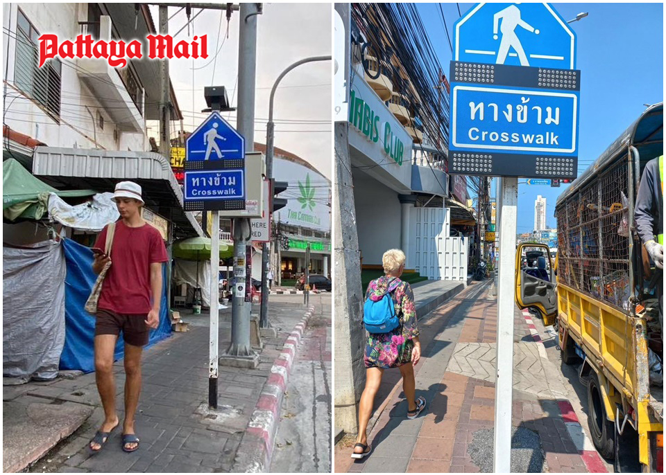 PATTAYA, Thailand – Following a series of accidents at the Machannu (son of Hanuman) intersection in Jomtien, where over 10 foreign tourists collided with road signs, resulting in injuries, public complaints prompted city officials to take swift action. Emergency units were dispatched to assist the injured individuals, leading to an inspection of the site on January 16. On the same day, city workers adjusted the height of the road signs to prevent similar incidents.